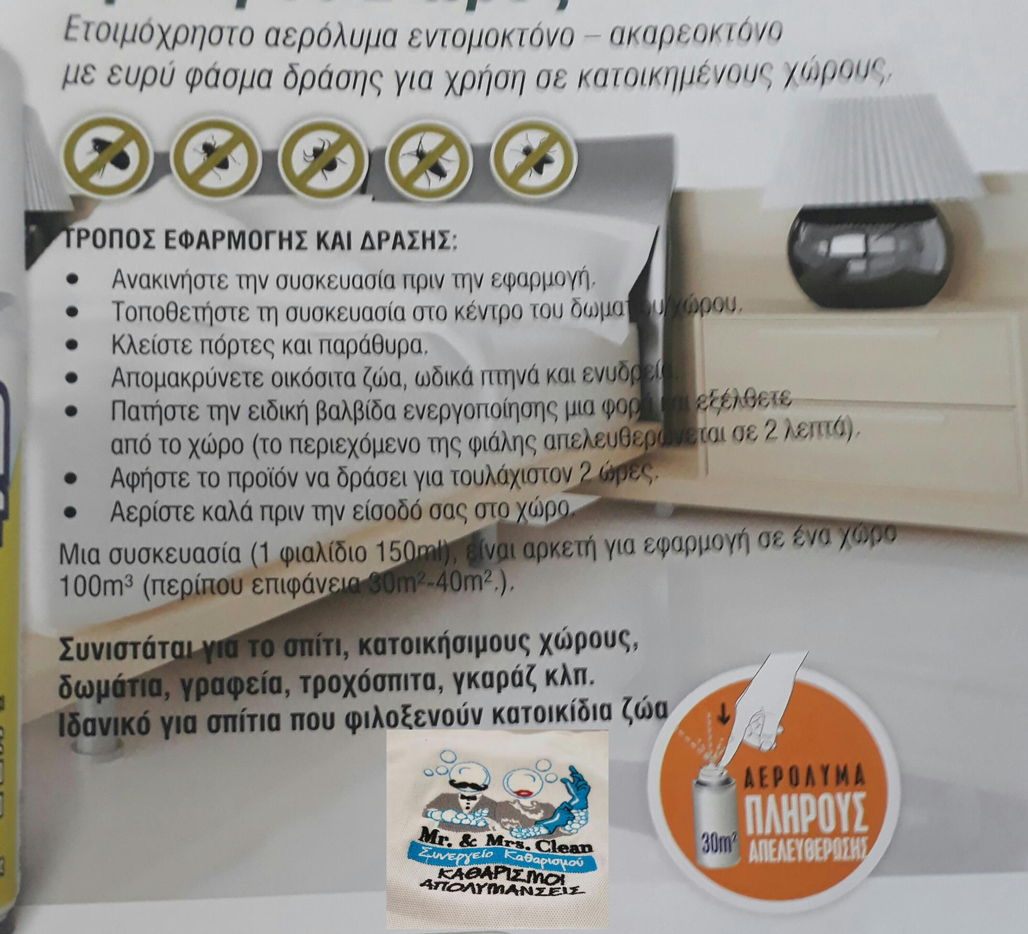 • Μια συσκευσασία (1 φιαλίδιο 150 ml) είναι αρκετή για εφαρμογή σε ένα χώρο 100m3 (περίπου επιφάνεια 30 m2 -40m2)